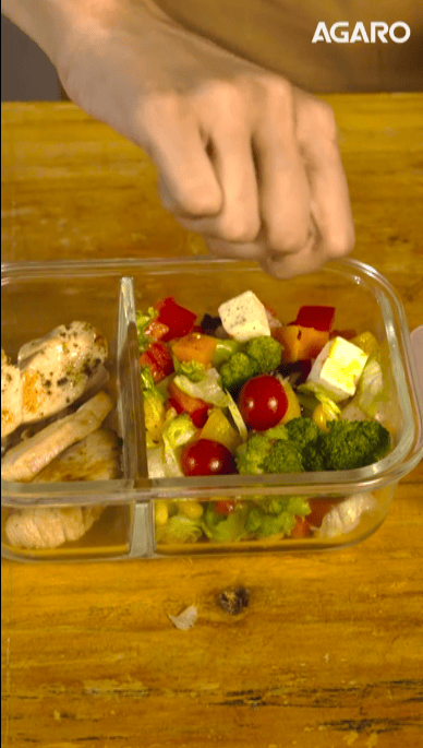 - 600 ml two compartment glass lunch box